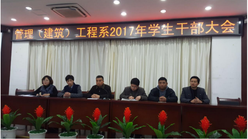 进一步加强本学期学生会、团总支工作,总结得失,提高工作效率。2017年3月8日下午,管理(建筑)工程系在图书馆报告厅隆重召开学生干部大会,系党总支书记杜先扬、党总支副书记杨力、辅导员丁辉、雷雨、占润润、系团总支、学生会、社团、班级代表参加会议,会议由系团总支书记李文君主持。