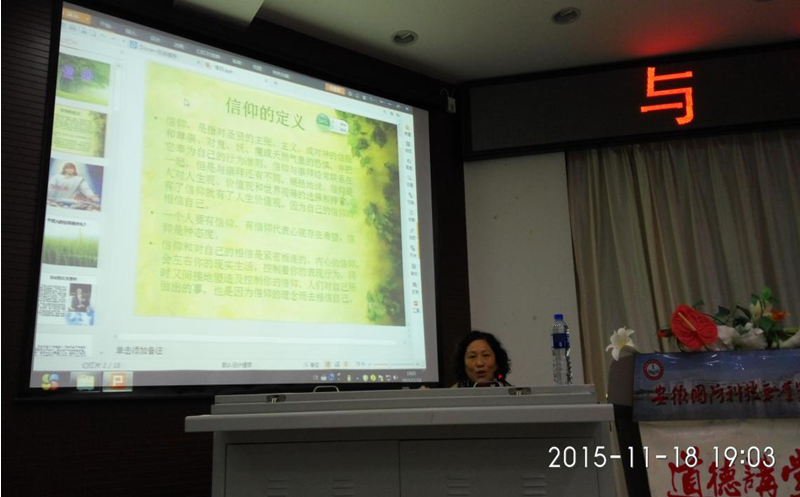 在“与信仰对话”专题中,高级政工师、思政部教师张圣霞与大家畅谈“信仰”并告诫同学们应始终坚定党的领导,始终坚持和发展中国特色社会主义,解放思想、改革开放、凝聚力量、攻坚克难。