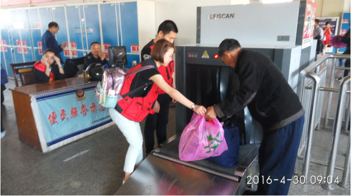 5月1日早上7点,车站已人山人海,志愿者们顾不得停顿,很快就进入各自岗位角色, 志愿者们认真引导旅客购票、帮旅客安检、引导旅客乘车、分发果皮纸袋、帮困难旅客拎行李,他们细致、耐心的服务得到了车站工作人员和旅客的一致好评,两天的志愿服务中,不时还有旅客驻足关心志愿者们,让志愿者们倍感温暖。(供稿:李文君)