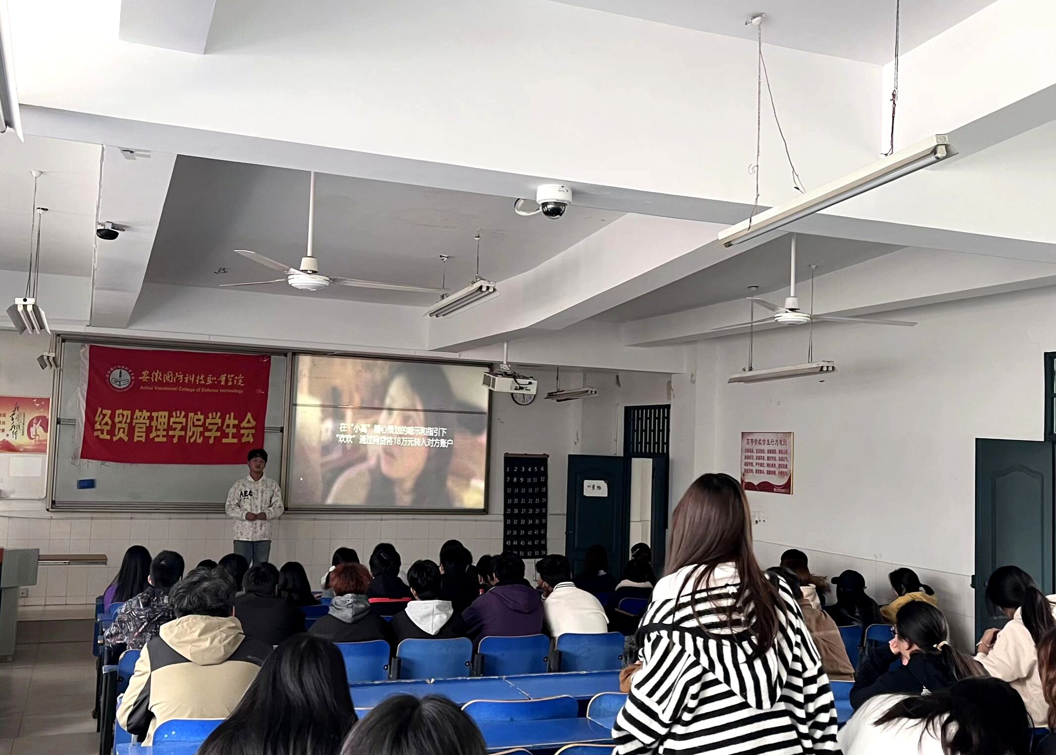 本网讯(学生通讯员 魏梓枫)为切实提升我院大学生的反诈意识与防骗能力,有效遏制校园诈骗案件发生,积极营造安全、和谐、稳定的校园环境,近日,经贸管理学院学生会在二教205教室成功举办“网安护航 筑梦开学季”反诈主题活动。