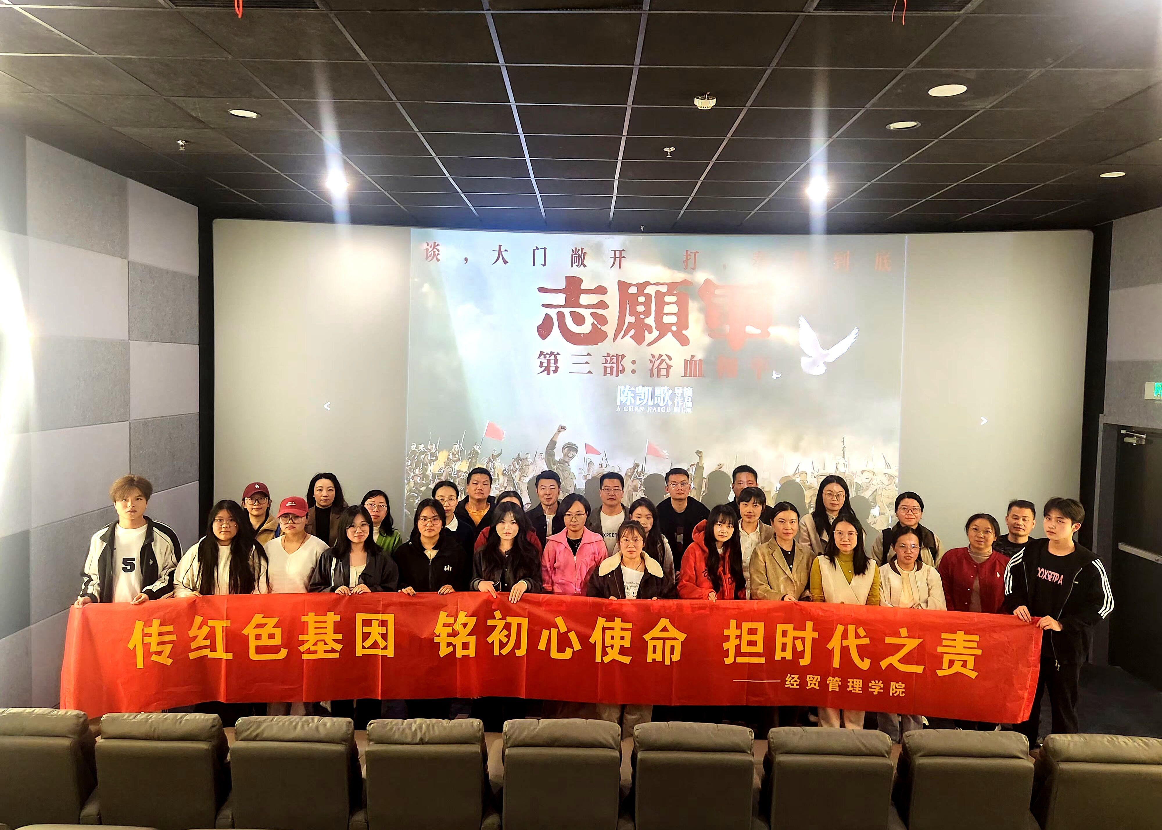 本网讯(学生通讯员 徐以勒)为厚植大学生爱国主义情怀,强化理想信念教育,引导青年学子传承红色基因、勇担时代使命,10月29日下午,经贸管理学院团总支精心组织学生入党积极分子及团学干部代表开展爱国主义教育主题观影活动,集体观看革命历史题材电影《志愿军》,在光影叙事中重温峥嵘岁月,汲取奋进力量。