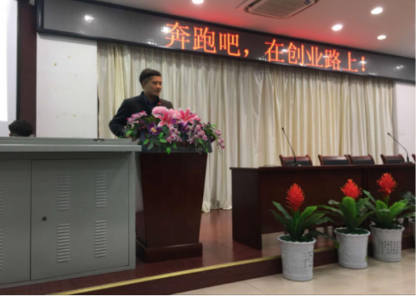 章发贵从在校期间做一名优秀学生干部对他职业生涯帮助开篇,围绕“奔跑”这一主题向学弟学妹们分享了他的求职历程和创业经历,对如何规划好职业生涯分享了成功经验并与听众进行了现场答疑互动,会场气氛热烈,掌声不断。