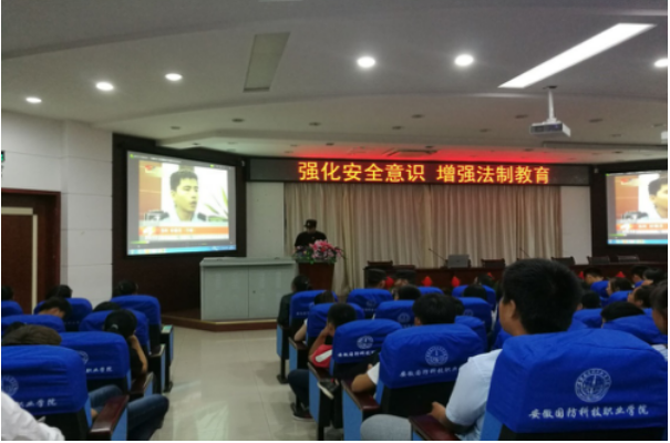9月21日晚,学院报告厅座无虚席,六安市公安局特警支队三大队指导员张震警官及他的同事们为管理(建筑)工程系的同学们带来了一场精彩的“强化安全意识、增强法治教育”讲座。讲座由系团总支书记李文君主持。