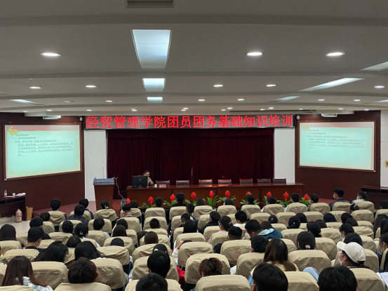 为加强学生干部队伍建设,11月17日至12月15日,经贸管理学院开展2021年秋学期学生干部集中培训。院党总支书记杜先杨,党总支副书记刘峰,团总支书记付玉梅,辅导员许凤麟应邀参与本次培训并开展专题讲座,经贸管理学院第十七届团总支学生会全体成员、班级主要学生干部及院属社团负责人共151人参加培训。