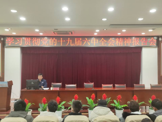12月2日晚,党总支书记杜先扬在报告厅开展“学习贯彻党的十九届六中全会精神”专题讲座。他鼓励全体学生干部要从《决议》中汲取开创未来的智慧和力量,从中央的决策部署中把准前进的方向和重点,在新时代新征程上奋力书写司法行政事业发展新篇章。