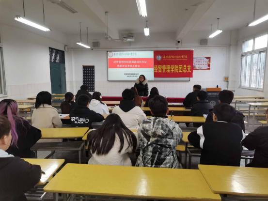 2021年12月22日下午,经贸管理学院团总支在二教106召开了基层团支部述职评议工作会,院团总支书记付玉梅及团总支委员、各班团支书全体参会,会议由院团总支副书记周宇同学主持。