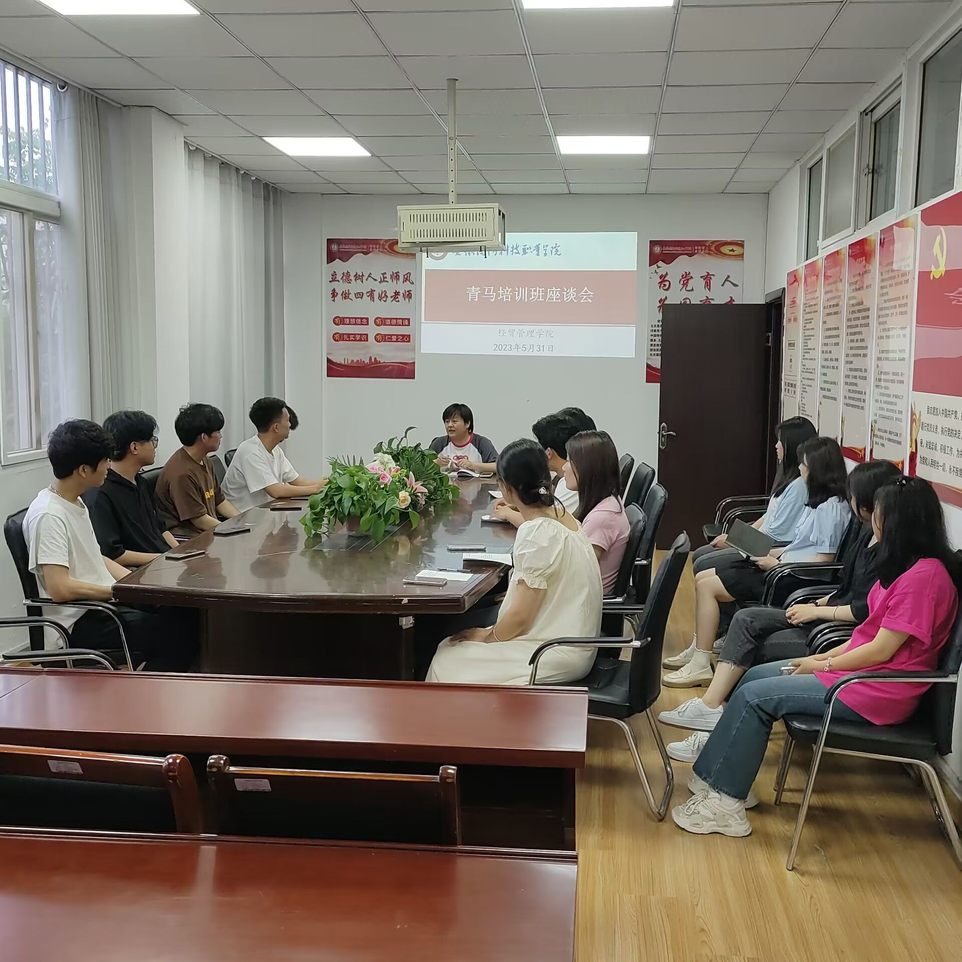 5月31日晚,经贸管理学院团总支在知行楼2楼会议室召开青马工程座谈会,学院院全体参训同学参会,会议由团总支书记许凤麟主持。