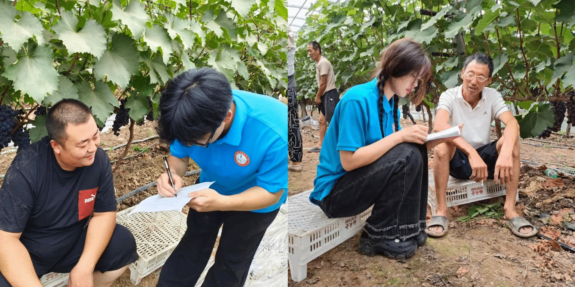 探索实践,促进技能提升。通过果农的现场教学,团队不仅学到了葡萄种植的专业知识,还亲身体验了收获的全过程,这种接地气的教学方式也让青年学生更加深入地理解了农业生产的艰辛与乐趣。与此同时,团队结合自身电子商务、市场营销专业特长,在葡萄种植基地开展网络直播推广助销,这种“理论+实践”的方式增强了团队专业技能和实践操作的融合。