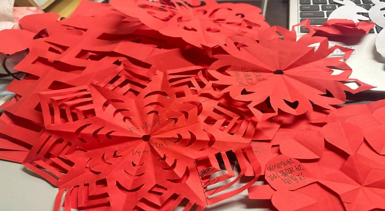 活动伊始,活动工作人员率先分享了关于剪纸艺术的历史、技艺、美好寓意等方面的知识。接着,参加活动的同学们纷纷领取了剪刀、纸张,亲身体验剪纸制作,感受剪纸的魅力。剪纸完成后,同学们积极展示自己的剪纸成果,分享本次活动的心得、体会。