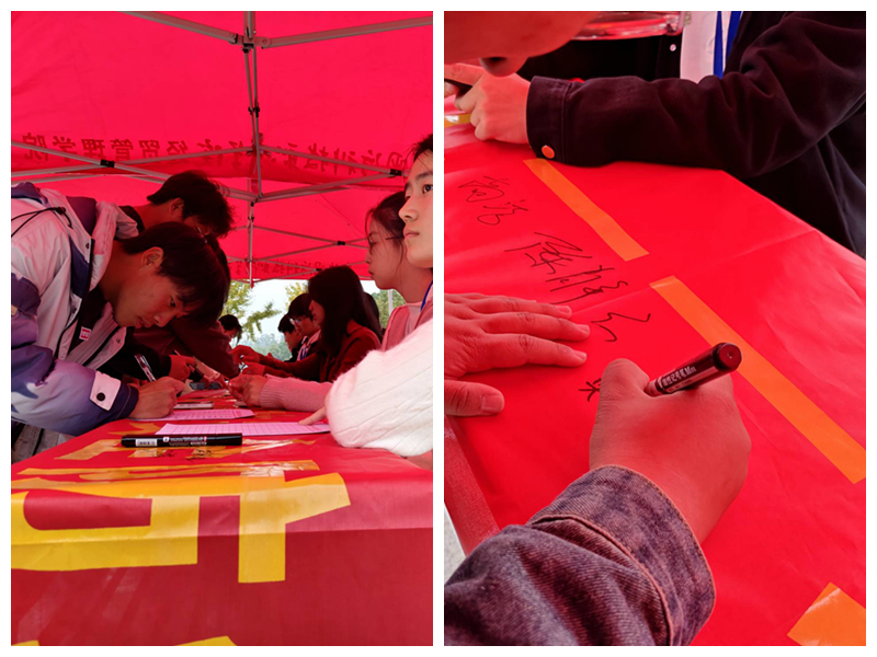 活动中,工作人员现场对卷发棒、电吹风、大功率用电等宿舍违禁物品和违纪宿舍的通报批评进行了部分展示,团总支成员着重指出使用大功率电器、吸烟、乱接电线等宿舍日常生活中的安全隐患问题,以及可能造成的严重后果。通过现场宣传消防安全知识,帮助同学们深刻认识到掌握消防安全的重要性,在生活中杜绝和预防可能引起消防事故的安全隐患。最后,同学们郑重的在横幅上签名,表达了自己对做好消防安全工作的决心,坚决杜绝安全隐患,全民消防我代言。