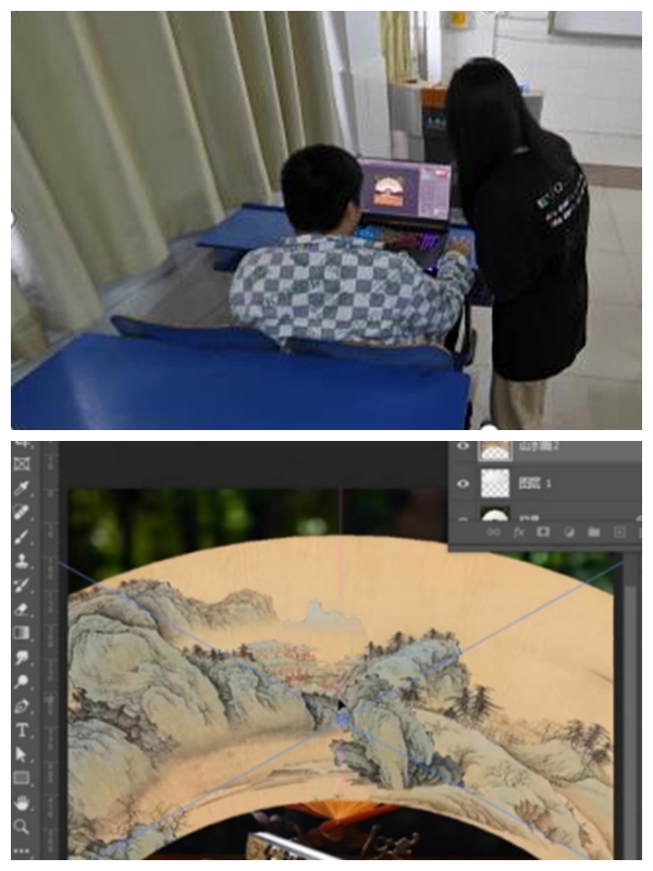 活动开始,协会负责人对PS软件用途进行了简要介绍,并结合所学知识讲解了PS软件的基本功能及其常用工具,将复杂的图像处理技术用直观的方式呈现给每一位新生。在活动中,同学们面对的挑战是将自己选择的画作与扇子设计相结合,这需要他们熟练运用PS的各类工具和技巧,对画作进行精细处理。通过同学们的构思和创意,一幅幅精美的扇子设计作品很快呈现出来,这些作品不仅展现了他们对PS技术的掌握程度,更体现了他们的创意和想象力。