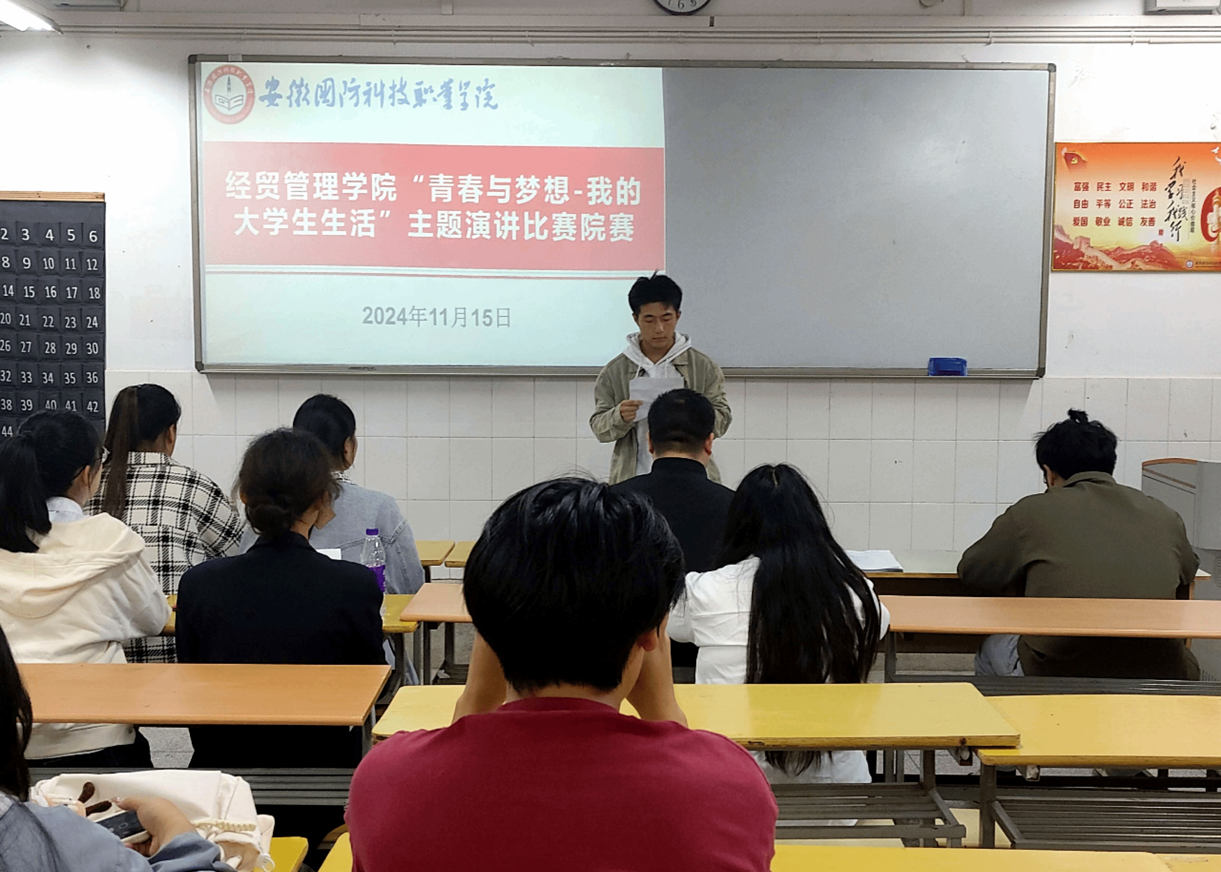 本网讯(学生通讯员 阮浩)11月15日,由经贸管理学院学生会主办的“青春与梦想-我的大学生活”演讲比赛在二教108教室成功举办。