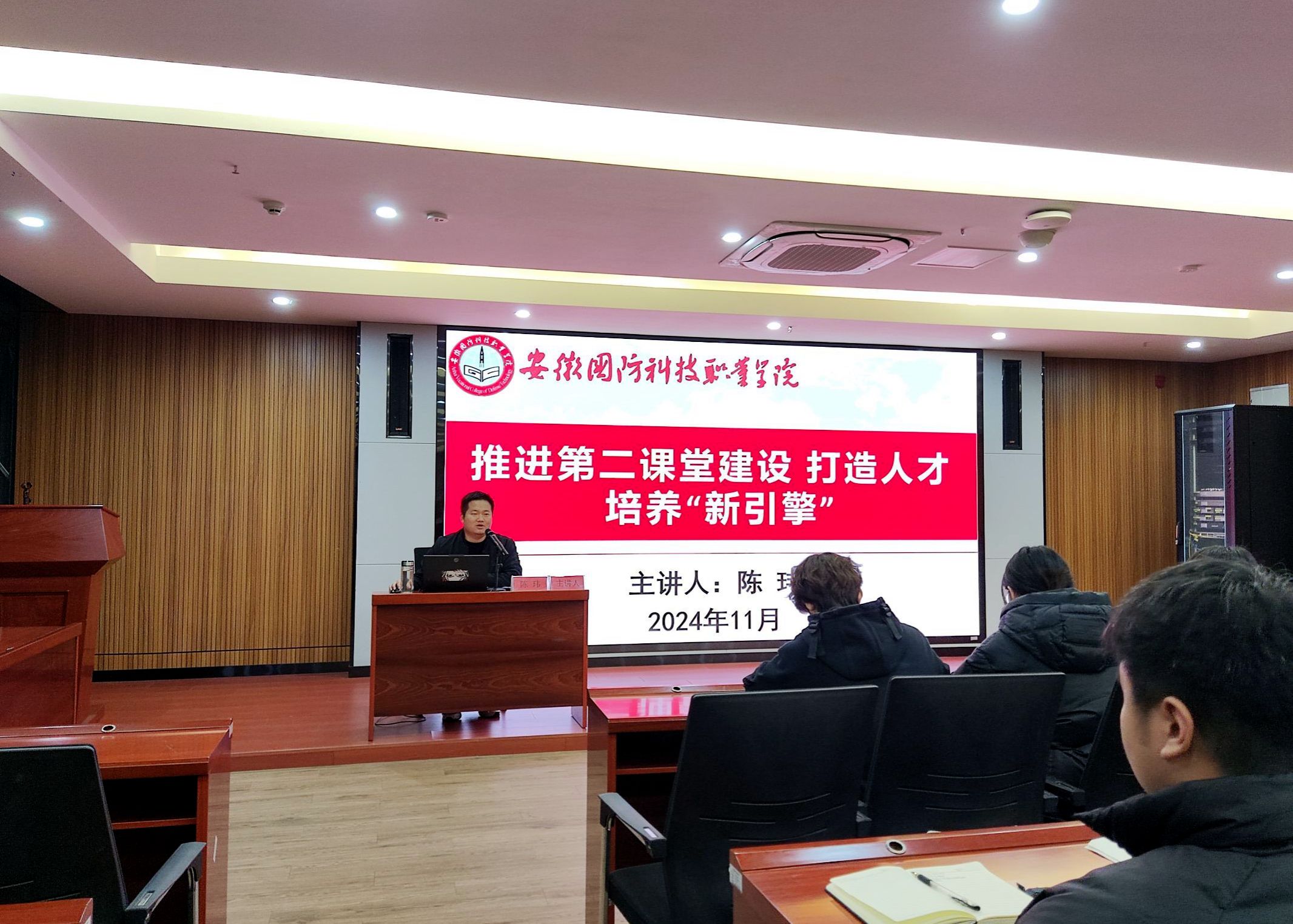 11月26日-28日,陈玮老师以“推进第二课堂建设 打造人才培养‘新引擎’”为题,为学生干部做主题培训;王超老师进行了“筑牢安全防线,共建平安宿舍”专题解读;丁丁老师开展了“关注心理健康,助力和谐校园建设”专题宣讲;刘星怡老师以“携手砥砺奋进 共建优良学风”为主题对学风建设方面提出严格要求。