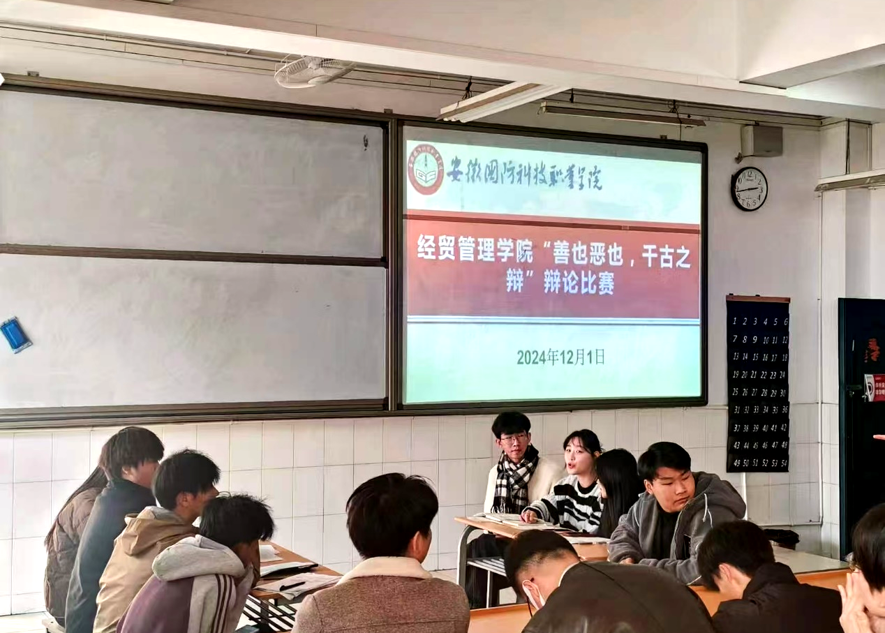 本网讯(学生通讯员 冯术灵)为培养同学们团队协作的能力和意识,提高大学生的逻辑思考和语言表达能力,丰富课余文化生活,12月1日下午,经贸管理院学生会在二教105教室举办了一场激烈的辩论赛。这场辩论赛吸引了各班级代表队参加,他们以“人性本善”还是“人性本恶”展开了激烈的辩论。