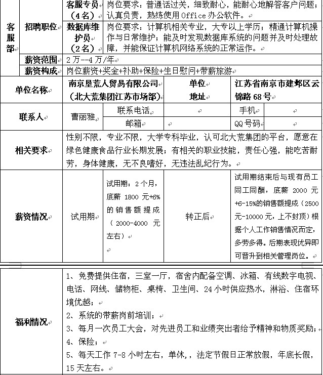 我公司拥有高素质的销售精英团队,财务、物流、企划、人事通力合作,相互配合。已实现产品统一配送,统一管理。现在江苏及周边地区已经开设了23家北大荒绿色健康食品的直营店,并以直营店为中心覆盖周边社区,我单位计划于2014年再开设8-10家直营店,并于2015年底将销售网络覆盖全国一线大中型城市。