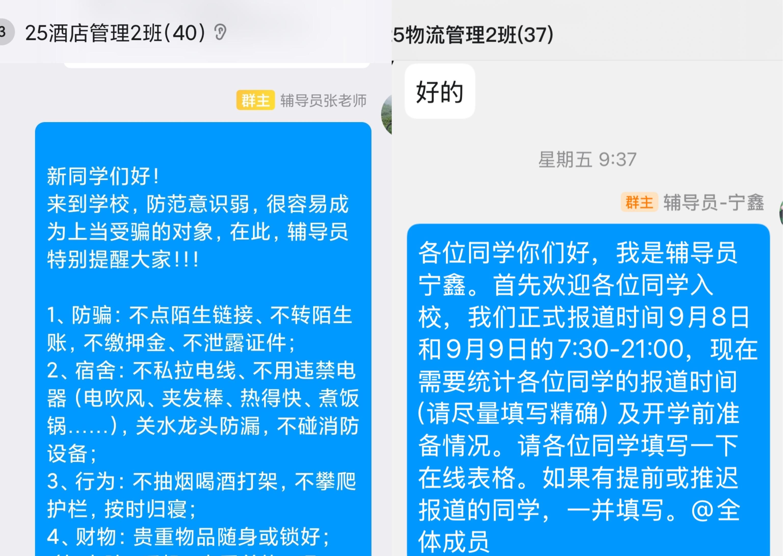 搭建桥梁,精准打通沟通渠道。为让新生提前了解校园、消除入学顾虑,学院积极搭建多元化沟通平台。一方面,组织各新生班级辅导员与新生开展 “一对一” 对接,精准掌握每位同学的需求与情况;另一方面,提前组建班级群,实时推送报到指南、校园地图、注意事项等关键信息,并安排专人在线答疑,及时解决新生及家长的疑问,让温暖关怀提前抵达。