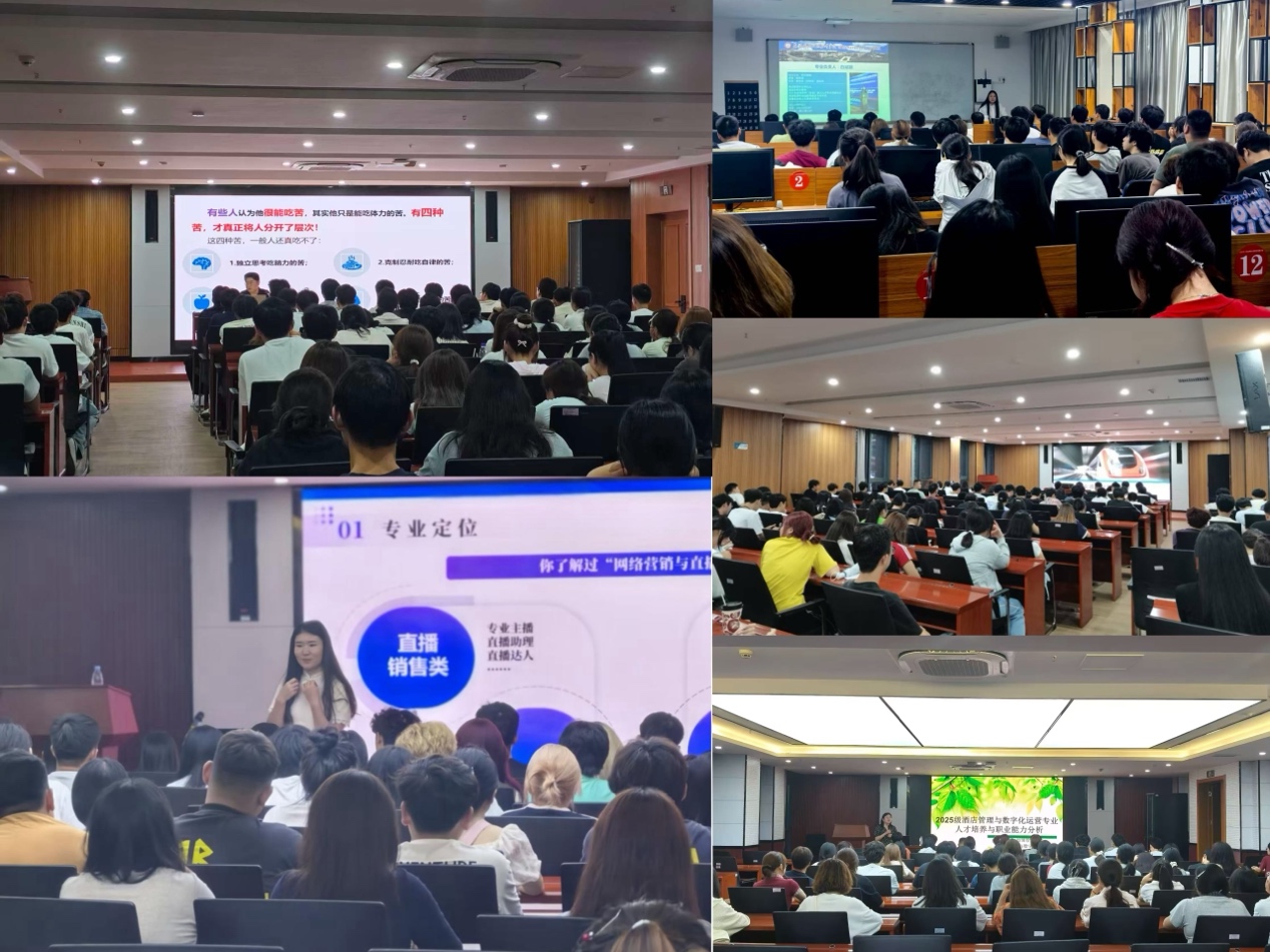 九月金秋,是收获的季节,亦是梦想播种的时刻。9月9日,经贸管理学院为2025级新生精心组织了一场专业教育启蒙大会,旨在为他们初入大学的专业认知“精准导航”,为未来的职业梦想“夯实地基”。电子商务、网络营销与直播电商、现代物流管理、城市轨道交通运营管理、酒店管理与数字化运营五大专业,联袂为新生们献上了一场精彩纷呈的专业教育。