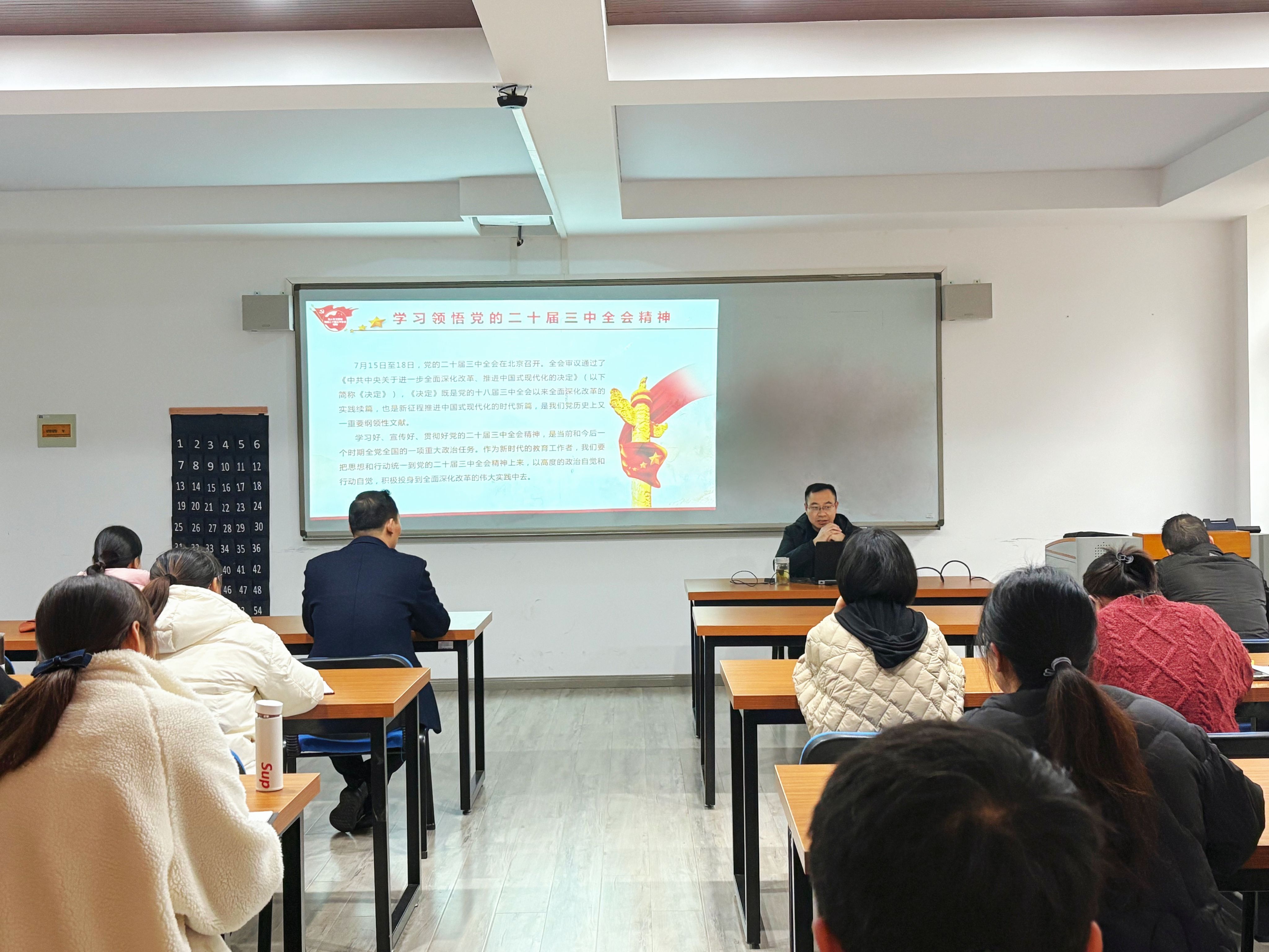 为深入学习宣传贯彻党的二十届三中全会精神,扎实推进党的二十届三中全会精神入脑入心、见行见效,12月4日,校党委委员、副校长付贤政深入经贸管理学院开展专题宣讲,为学院全体教职员工深入解读了党的二十届三中全会精神,并就如何贯彻落实全会精神、推动学院教学改革和发展提出了具体要求。