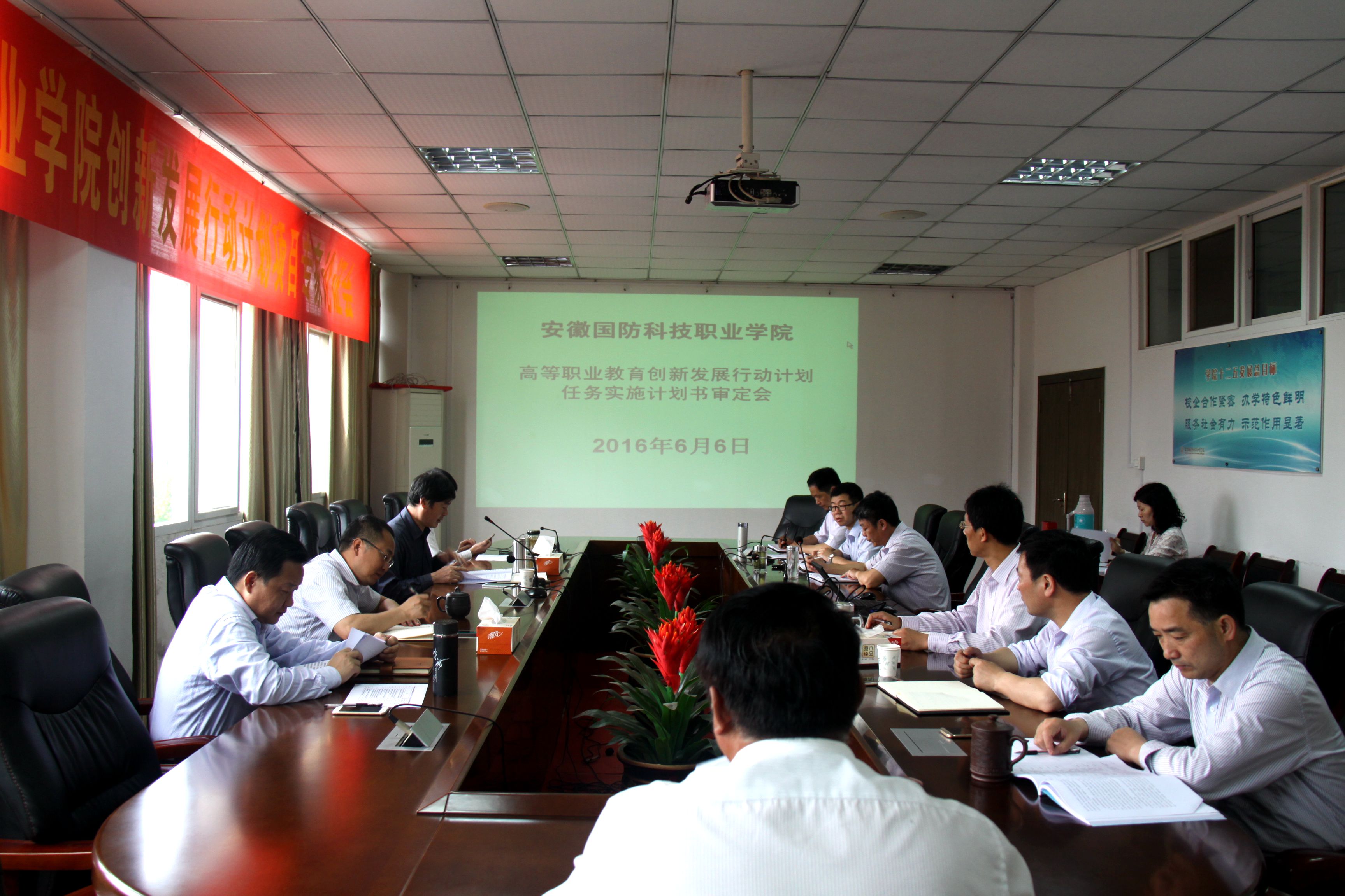 6月6日上午,我院召开高等职业教育创新发展行动计划任务实施计划书审定会,院党委书记余嗣元、党委副书记朱德明、副院长冯伦久、丁守宝及相关部门负责人参与会议,会议由院党委书记余嗣元主持。
