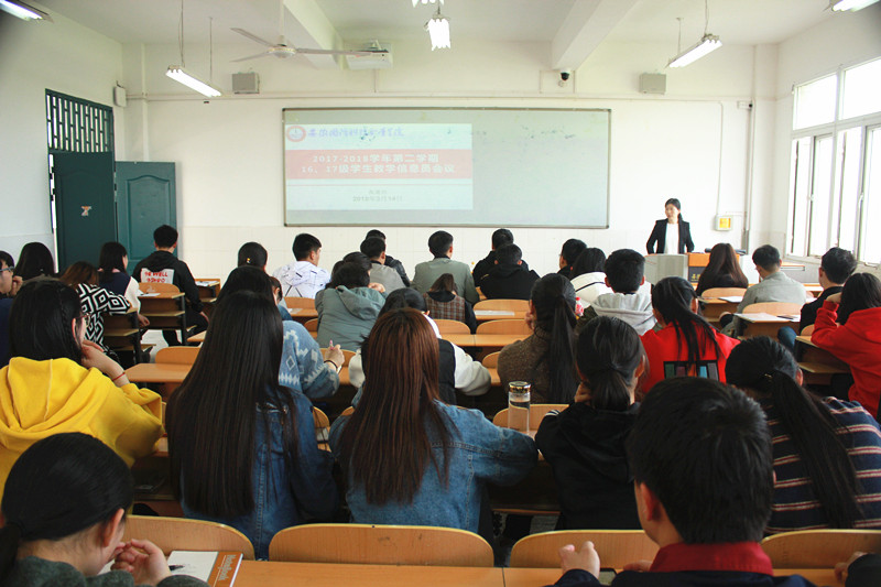 为强化教学质量监控,发挥学生教学信息员在教学环节中的重要作用,3月14日下午,高建办在2号教学楼207教室召开新学期首次学生教学信息员会议。来自万象城官网六个二级学院的35名学生教学信息员参加了本次会议。