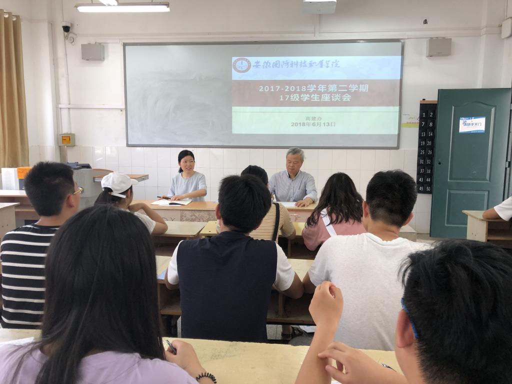 6月13日下午,万象城官网召开了2017-2018学年第二学期学生座谈会。会议分2016和2017级两个会场,分别在万象城官网2号教学楼202教室和203教室举行。本次座谈会由校督导员夏世林和袁志安主持,参加会议的还有高建办老师叶高洁、刘星怡,以及来自各学院2016级、2017级各班的50余名学生代表。