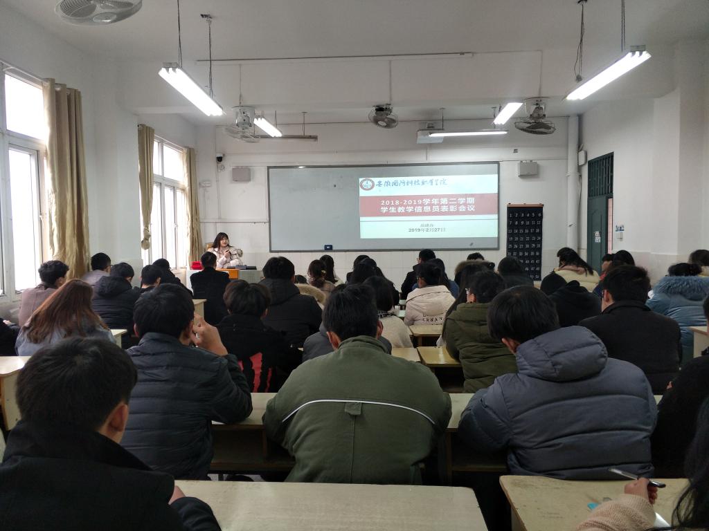 为强化教学质量监控,发挥学生教学信息员在教学环节中的重要作用,2月27日下午,高建办在2号教学楼203教室召开新学期首次学生教学信息员会议。来自万象城官网六个二级学院的65名学生教学信息员参加了本次会议。
