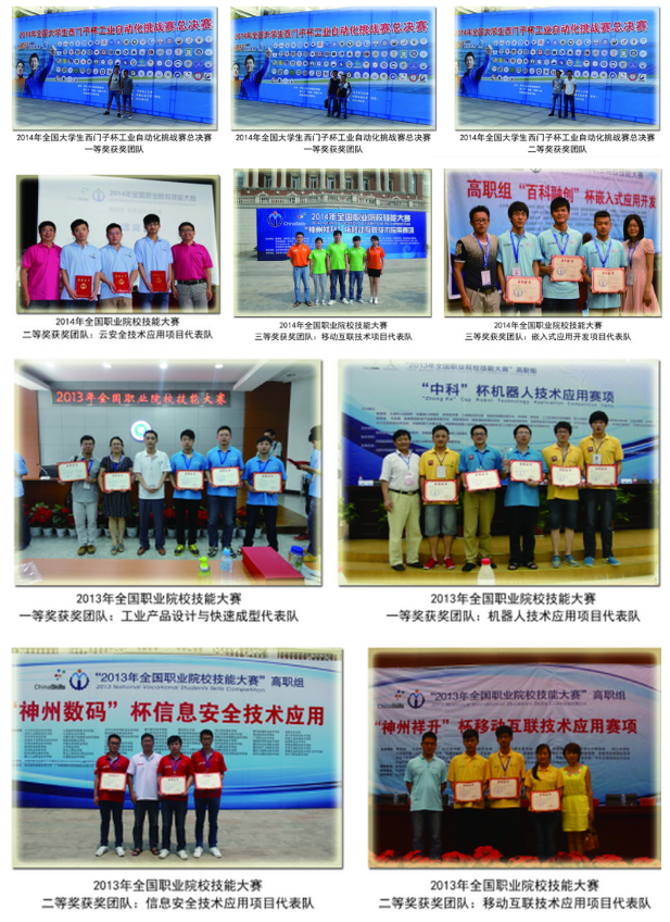 “十二五”期间,学院树立了“以职业技能大赛引领技术技能型人才培养”的大赛指导思想,提出了“以赛促学、以赛促教、以赛促改、以赛促建”的大赛工作思路,构建了“四层级”(系级、院级、省级、国家级)、“三覆盖”(覆盖每个专业(群)、覆盖每位专业教师、覆盖每位学生)的大赛体系,人才培养质量不断提高,大学生就业率和就业质量不断提高,“上手快、守纪律、能吃苦、讲奉献” 成为用人单位对我院学生的共性评价。