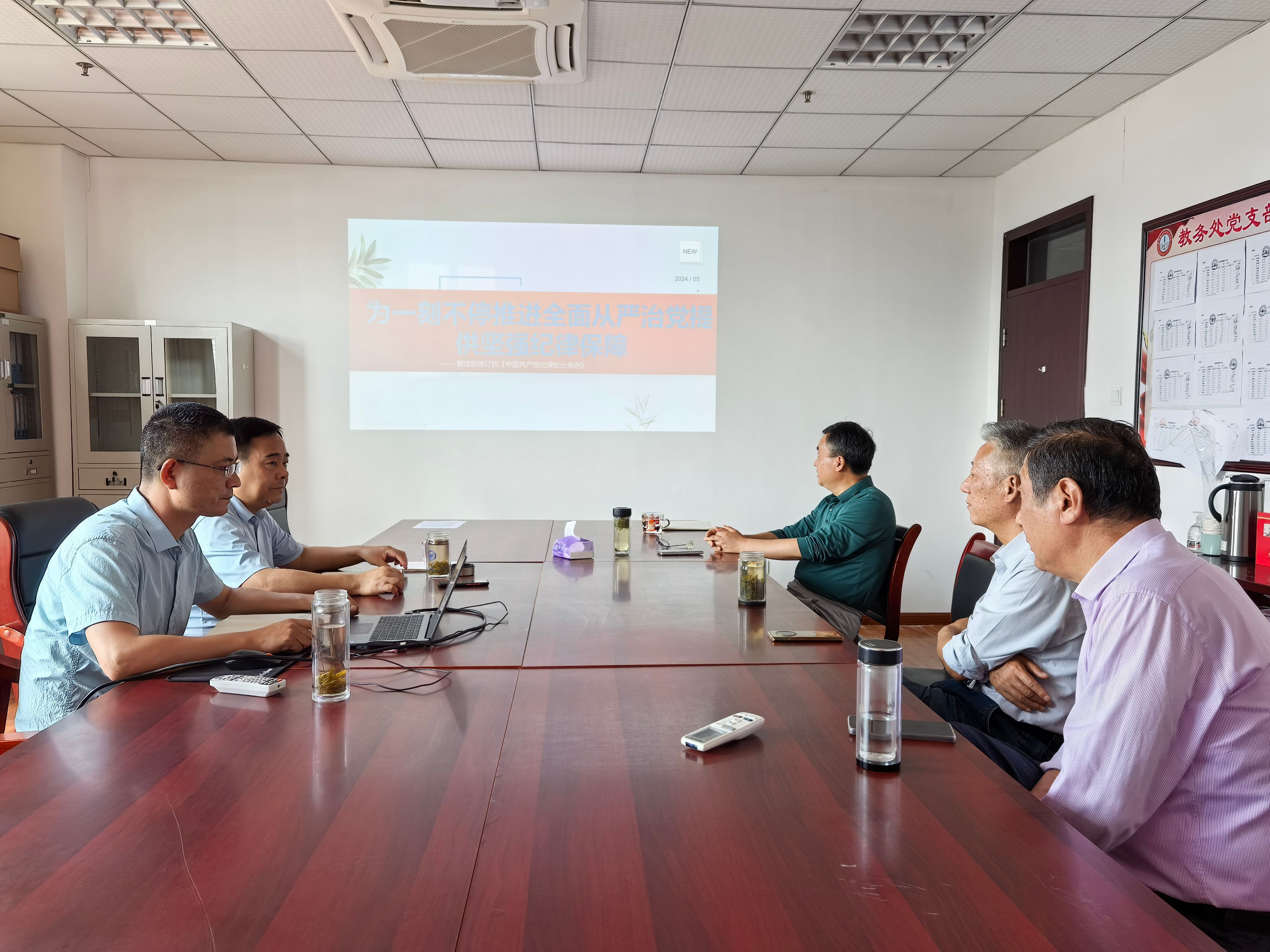 5月17日,质量管理办公室在秉心楼1206会议室,学习新修订的《中国共产党纪律处分条例》第三、四五章并开展交流讨论,支部书记黄存东强调要进一步学懂弄通新时代党的纪律规矩,严格遵守党的纪律,准确掌握“六项纪律”的主旨要义和规定要求,坚持以知明纪,从反面案例中汲取深刻教训,努力将《条例》精神要义内化于心、外化于行。支部党员们纷纷表示,作为党员教师要发挥先锋模范作用,强化自我约束,提高免疫力,做到明纪律守规矩,树清风扬正气。