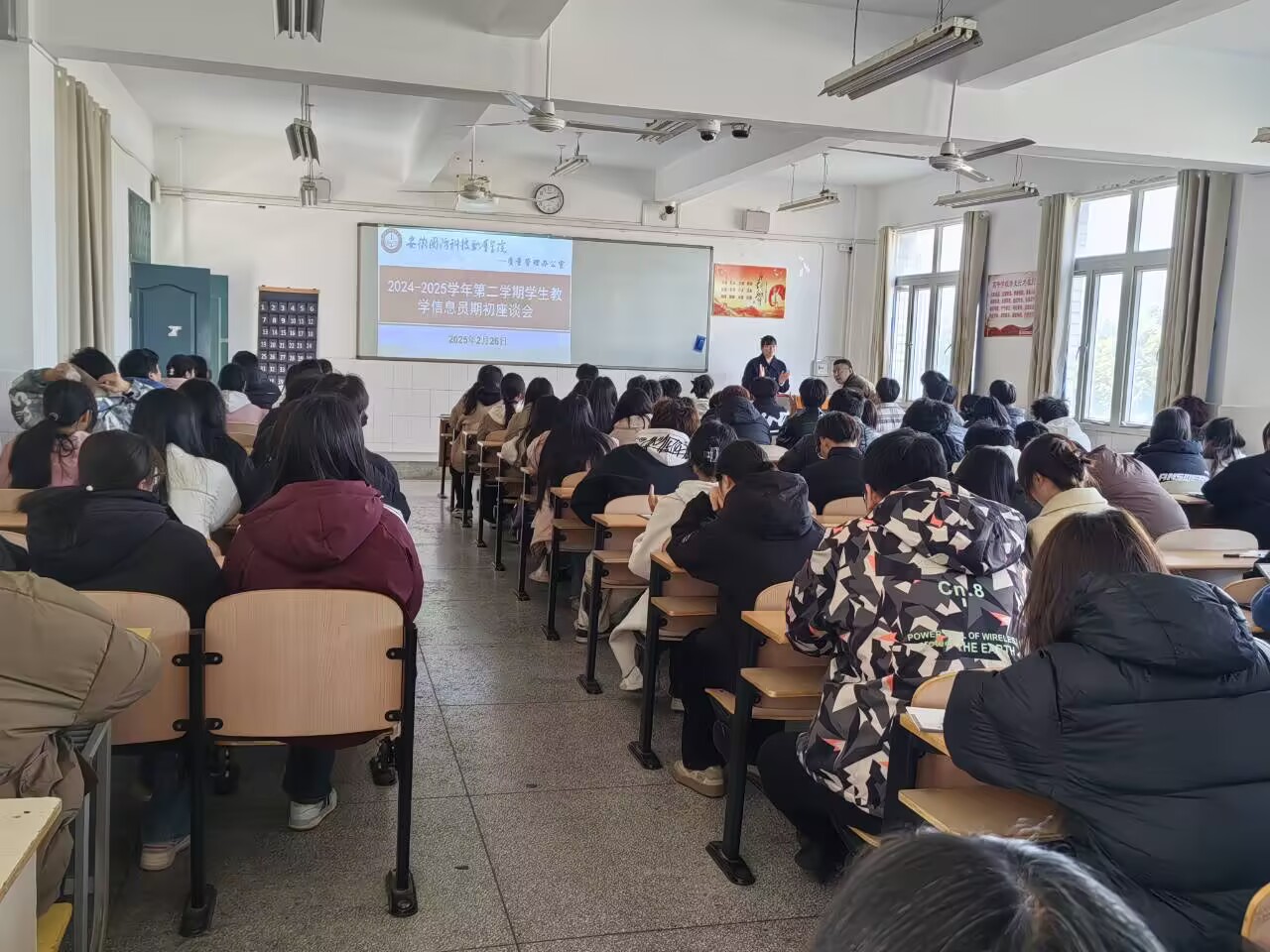本网讯 为进一步提升教学质量,加强师生沟通,促进教学信息的及时反馈与改进,校质量管理办公室于2025年2月26日在2教207召开了学生教学信息员座谈会,各学院学生教学信息员、质管办副主任侯国栋参加了会议,会议由质管办黄静老师主持。
