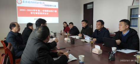 听课制度是学校教学质量监控体系的重要内容,“走进课堂”是学校历年来的传统。听课结束之后,质量管理办公室主任黄存东教授主持召开《2021-2022学年第二学期期初线下教学专项督查评议会》,校党委委员参加了此次会议。会上就开学第一堂课反映出的问题进行了讨论,并提出改进要求。学校将始终坚持教学中心地位,深入开展“课堂革命”活动,提升教学质量,更好地服务于学生成长成才。