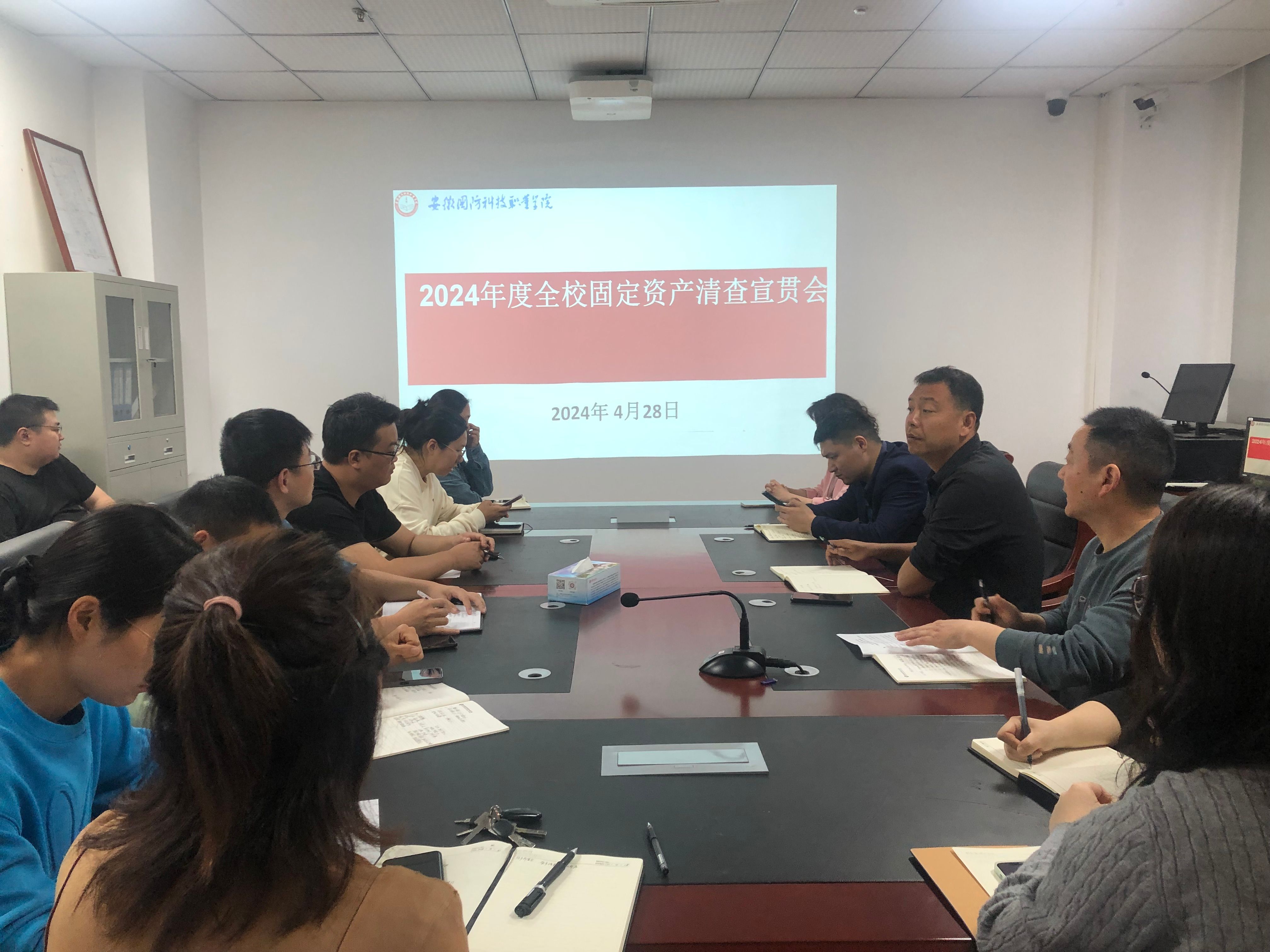 (国资办 匡勇)4月28日下午,国有资产管理办公室在秉心楼1006室召开了“2024年度全校固定资产清查宣贯会”,国有资产管理办公室人员及全校各单位资产管理员参加会议,会议由总务处处长张伟业主持。