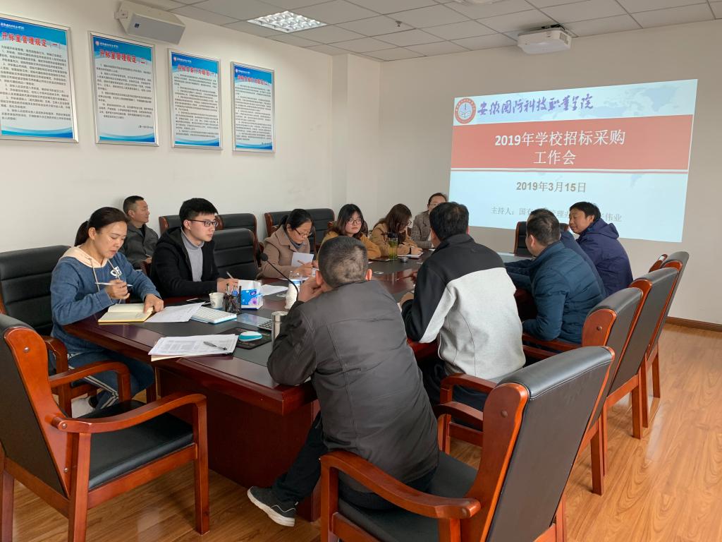 2019年3月15日下午16时,国资办在教学综合楼1006室召开2019年学校招标采购工作会,财务处处长李大武和各部门、学院项目主要负责人参加了会议。会议由国资办主任张伟业主持。