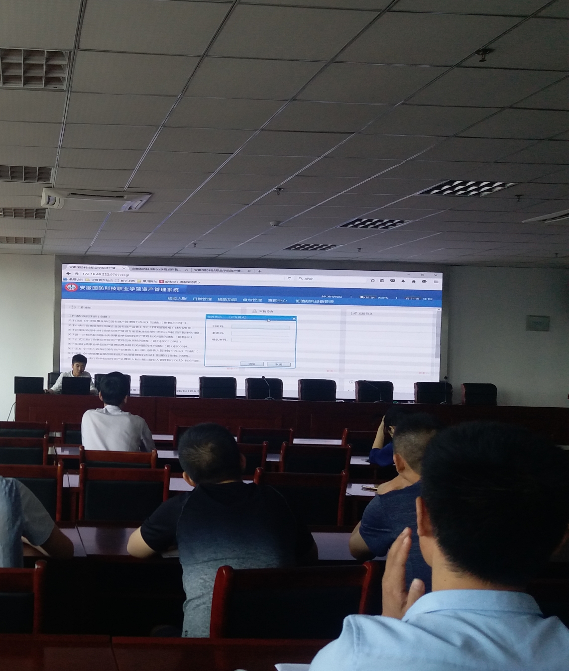 接着,甘成兴为大家讲解资产管理软件的使用和操作方法,详细介绍了在资产管理软件系统上进行固定资产入库、验收、调剂、处置等操作流程,并现场进行了演示。
