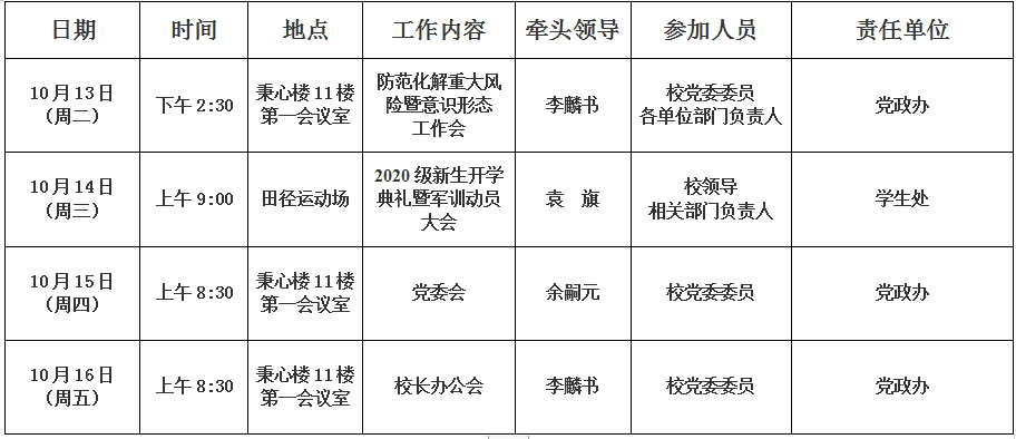 上一条:2020/2021学年第一学期第八周全校性会议安排