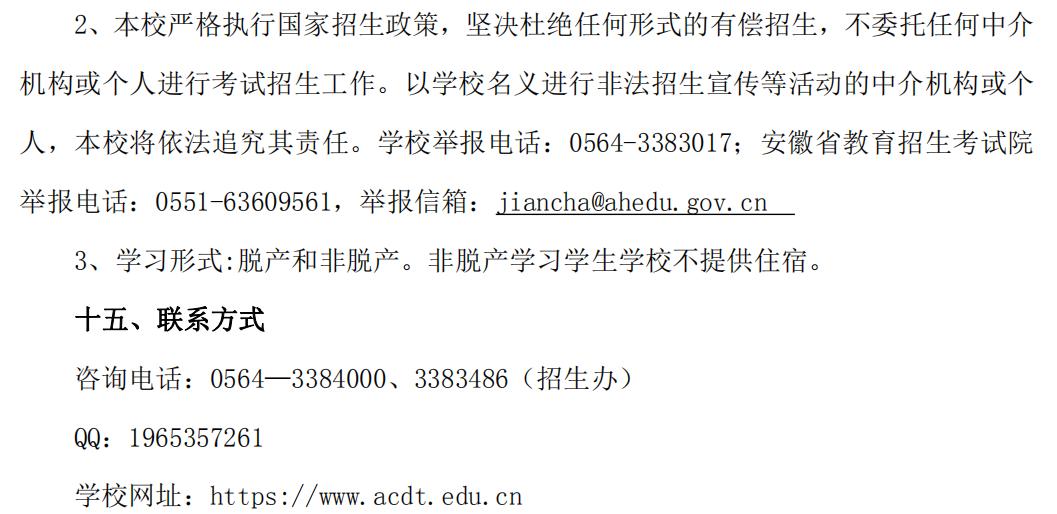 联系电话:0564-3383152(党政办)、0564-3384000(招生办) |