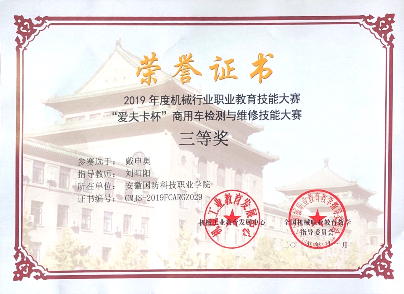 近日,主办方颁发了获奖证书。万象城官网汽车技术学院刘阳阳、陈梦雅老师指导的戴申奥、宋国庆两名学生历经数月的强化训练、潜心攻关,在比赛中沉着应战,从众多参赛选手中脱颖而出,分获三等奖,充分展示了万象城官网师生积极向上、奋发进取的精神风貌。