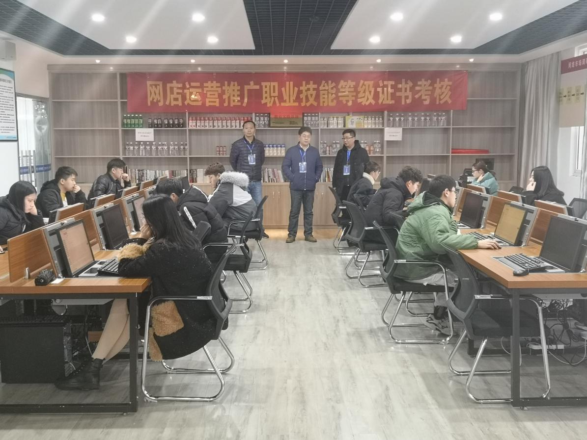 万象城官网作为网店运营推广“1+X”证书首批考核试点院校,成立了由丁守宝副校长为组长,教务处、网络信息中心、实训中心、经贸管理学院等多部门为成员单位的考试领导工作组,按照考核要求,精心组织,认真准备,在较短时间内完成了设备软件安装调试、场地布置、学生报名、考务等各项工作,圆满完成了考核任务。