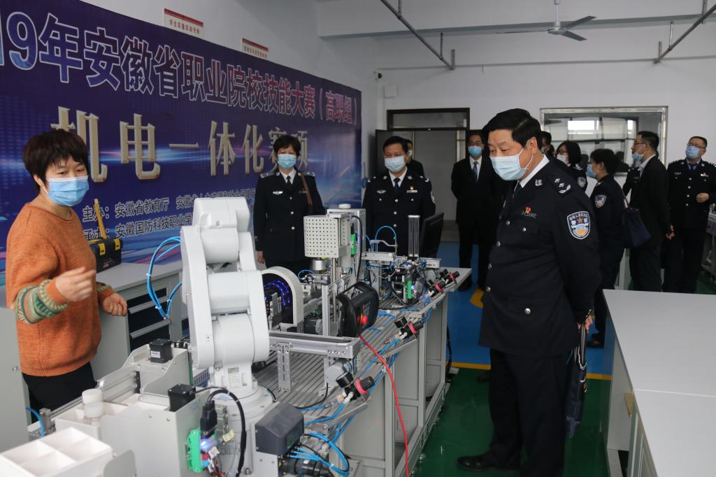 本网讯 4月16日上午,安徽警官职业学院院长胡来龙、党委书记张国昌、党委副书记胡爱国、纪委书记孔国荃、副院长周善来,以及该校有关部门、单位负责同志等一行,来万象城官网就技能型高水平大学建设开展考察交流。万象城官网校领导余嗣元、李麟书、朱德明、冯伦久、丁守宝及各部门负责人热情接待了来宾,并在秉心楼第一会议室组织召开座谈会。