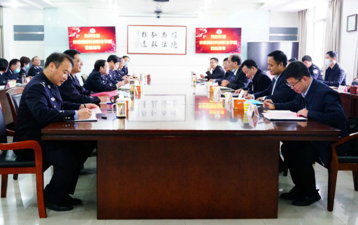安徽警官职业学院院长胡来龙、党委书记张国昌等学校领导对李麟书一行的到来表示热烈欢迎,并组织召开了交流座谈会。