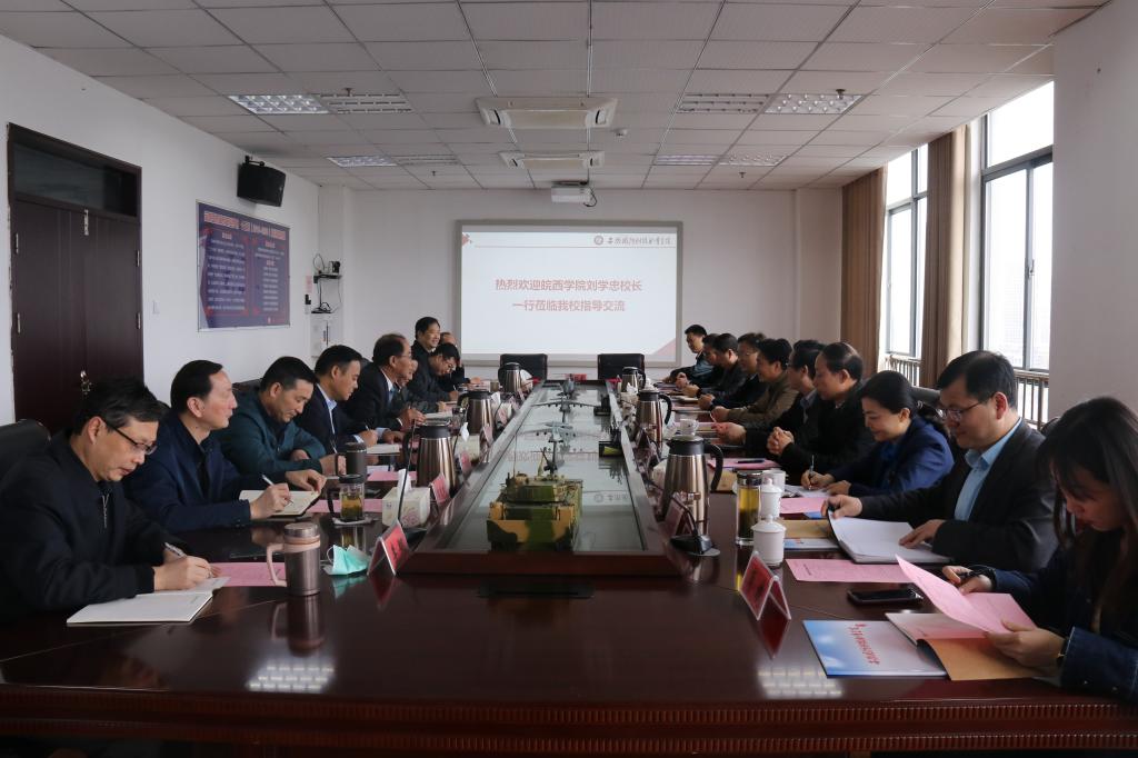 座谈会上,校长李麟书同志首先代表学校向刘学忠一行的到来表示热烈欢迎,并从学校基本情况、发展成就和发展方向等方面简要介绍了学校办学历程。李麟书指出,本次专升本联合培养项目是一个崭新平台,合作前景值得期待,双方应抓住机遇,持续扩大交流合作成果,进一步提升人才培养质量。