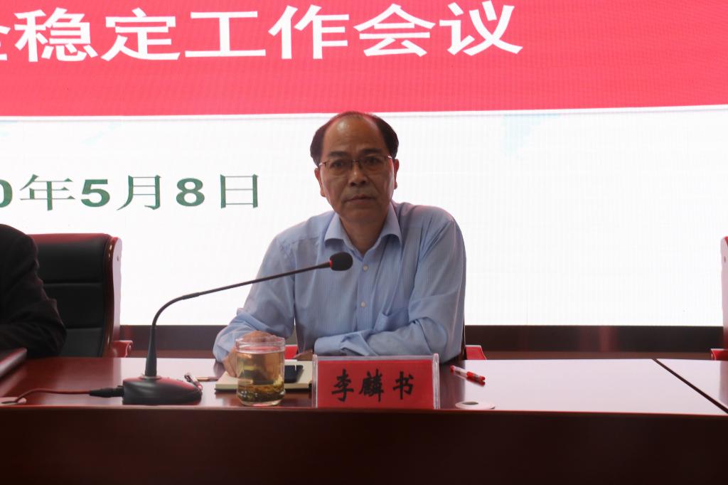 本网讯(安委办 光子木)5月8日下午,学校2020年度安全稳定工作会议在秉心楼十二楼会议室召开,校党委书记余嗣元,校长李麟书,校党委副书记、纪委书记朱德明,校党委委员、副校长冯伦久出席会议,学校中层及以上干部、二级学院办公室主任、辅导员及全体安全员参加了会议。会议由校长李麟书主持。