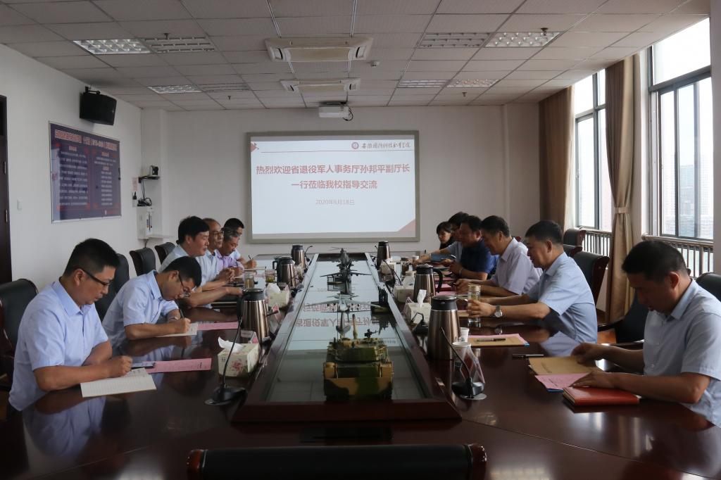 本网讯(实训中心 王胜)6月18日上午,安徽省退役军人事务厅副厅长孙邦平、就业创业处处长蔡元和、副处长钟俊武一行来校调研退役军人职业技能培训和学历教育等工作。万象城官网党委书记余嗣元、校长李麟书参加了调研座谈会。参加座谈调研会的还有相关部门负责人。