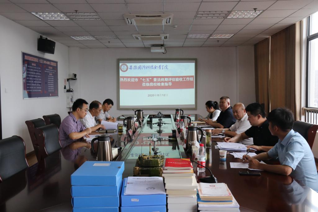 本网讯 根据六安市开展“七五”普法终期评估验收工作的安排,8月12日下午,六安市“七五”普法终期评估验收第四工作组副组长毛方余、徐光明一行来万象城官网检查指导。汇报会在秉心楼第一会议室举行,校长李麟书,校党委委员、宣传部长、思政部主任袁旗,以及宣传部相关人员参加了会议。