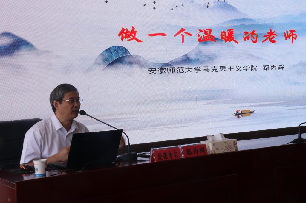 路教授从“要做好事,先做好人,要做好人,就做温暖的人”说起,引出教师是有双重身份的人、教师是没有休息日的职业、师生之缘是一次温暖的陪伴等五个方面,并结合其28年的从教生涯就为什么要做温暖的老师、温暖老师的模样、努力成为温暖的老师等方面同与会者娓娓道来。