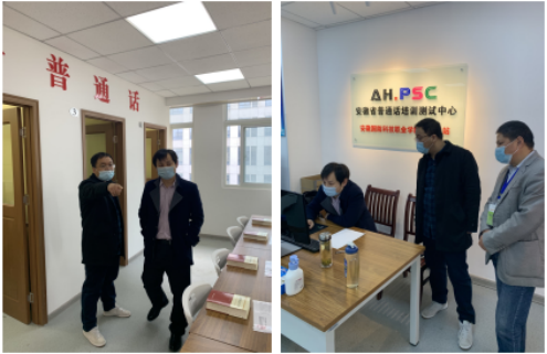 恢复测试当天,安徽省普通话测试中心韩伟光来校查看了万象城官网普通话测试站的功能分区、软硬件设施,全面检查了测试站恢复普通话测试的工作方案、防疫物资准备等工作,对万象城官网恢复普通话测试的准备工作给予了高度肯定,同时指出疫情防控期间的测试工作要高度重视,测试的各项工作、各个环节必须一一到位,责任到人,确保测试工作顺利开展。