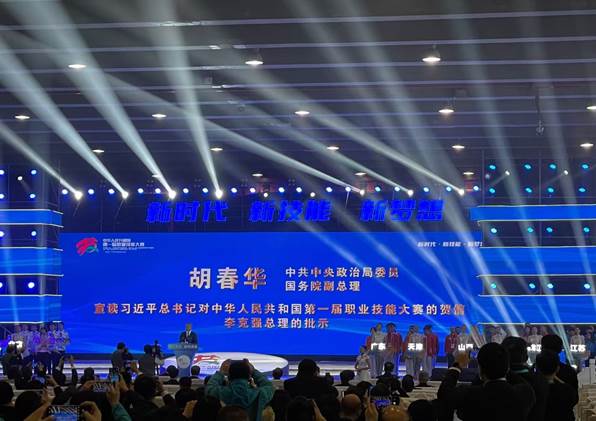2020年12月10日在广东省广州市举办中华人民共和国第一届职业技能大赛,是新中国成立以来首次举办的竞赛规格最高、竞赛项目最多、参赛规模最大、技能水平最高的综合性国家职业技能大赛。本届大赛的主题是“新时代、新技能、新梦想”,共设86个比赛项目,包括63个世赛选拔项目和23个国赛精选项目, 来自全国各省(区、市)、新疆生产建设兵团和有关行业的36个代表团,将有2557名选手、2376名裁判人员参赛。开幕式上,中共中央政治局委员、国务院副总理胡春华宣读了习近平总书记的贺信和李克强总理的批示,并宣布大赛开幕。中共中央政治局委员、中共广东省委书记李希致欢迎辞,人力资源和社会保障部党组书记、部长张纪南致开幕辞,中共广东省委副书记、广东省人民政府省长马兴瑞同志主持开幕式。