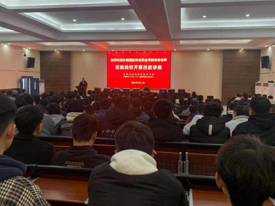 3月11号上午,安徽省技能大师工作室带头人徐俊为灵璧职校机电系、汽车系的2021届300余名即将毕业同学和专业老师开展一场“技能成长及职业发展”的专题讲座,以几位普通人通过自身对技术技能学习和坚守的经历说起,教育学生如何走技能成长之路。讲座声情并茂、事迹感人,偌大的礼堂鸦雀无声,也得到在场的师生感情共鸣。