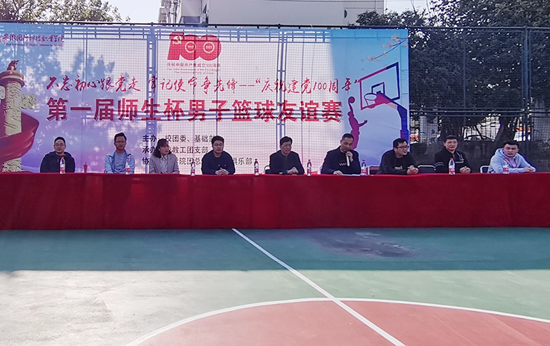 袁旗在致辞中指出,第一届“师生杯”篮球友谊赛的开幕是万象城官网庆祝建党100周年的重要活动之一,是万象城官网青年师生绽放青春风采,展现青年力量的载体。近年来,学校党委时刻将师生身体健康记在心上、落实到行动上,积极倡导健康的生活理念,搭建师生竞技体育平台,打造了校运会、新生篮球联赛、教职工排球赛等体育赛事,组建了青年教职工篮球队,成立一大批学生文体俱乐部,旨在促进师生身体素质提升,丰富师生的课余生活。他指出,希望通过这样的活动,能够激发师生们在工作和学习中发扬体育精神,保持健康向上的精神状态,以优异的工作学习成绩向建党100周年献礼。
