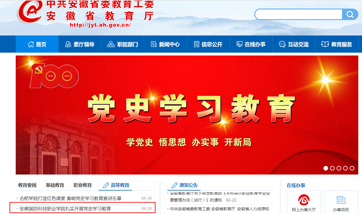 安徽教育网首页报道学校党史学习教育开展情况