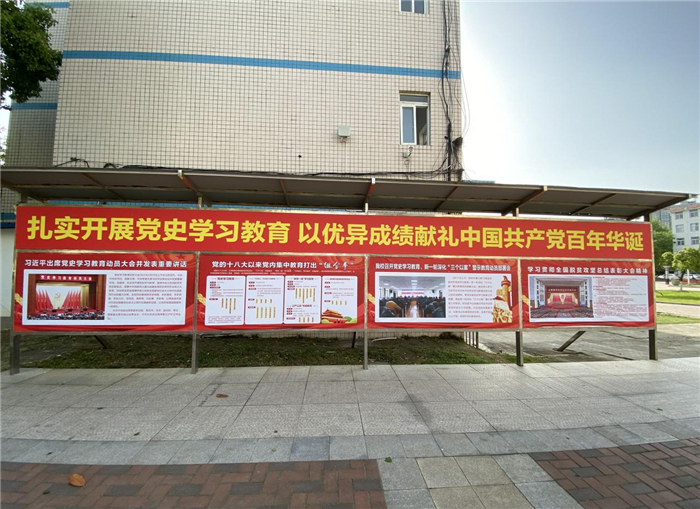 学校通过专题网站、宣传栏、宣传条幅、党史展、专题报纸、安徽教育网等载体,大力宣传上级党史学习教育精神和部署要求,宣传学习教育的重大意义、目标任务,报道学校党史学习教育好做法好经验,营造了浓厚的党史学习教育氛围。